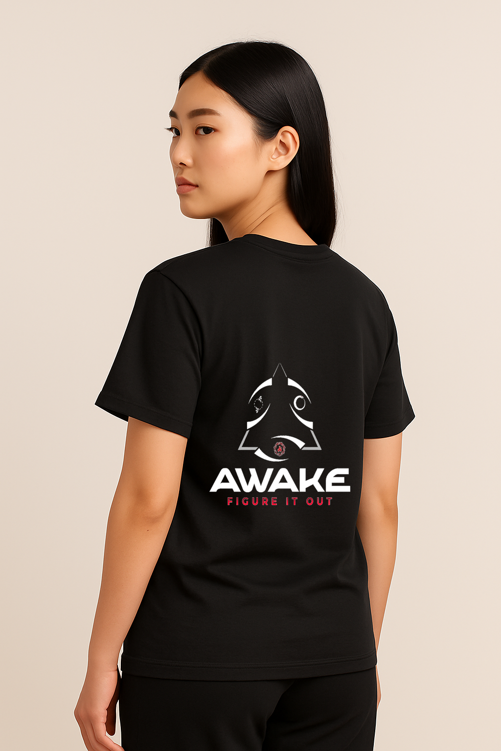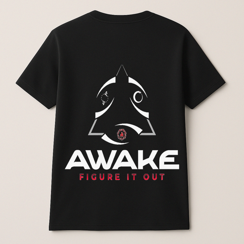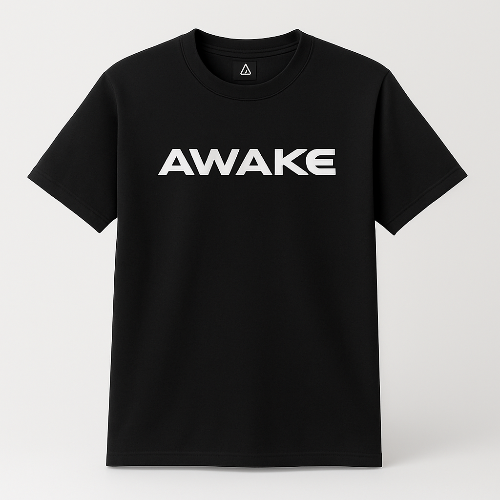 Bold and direct, this black AWAKE tee is designed for those who live with intention. Featuring our signature “AWAKE” print across the front, this shirt is a daily reminder to stay conscious, question patterns, and choose your path.
